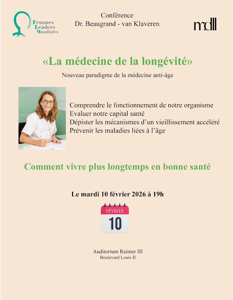 L’association Femme Leaders Mondiales Monaco vous propose une conférence par le Dr Beaugrand – van Klaveren.